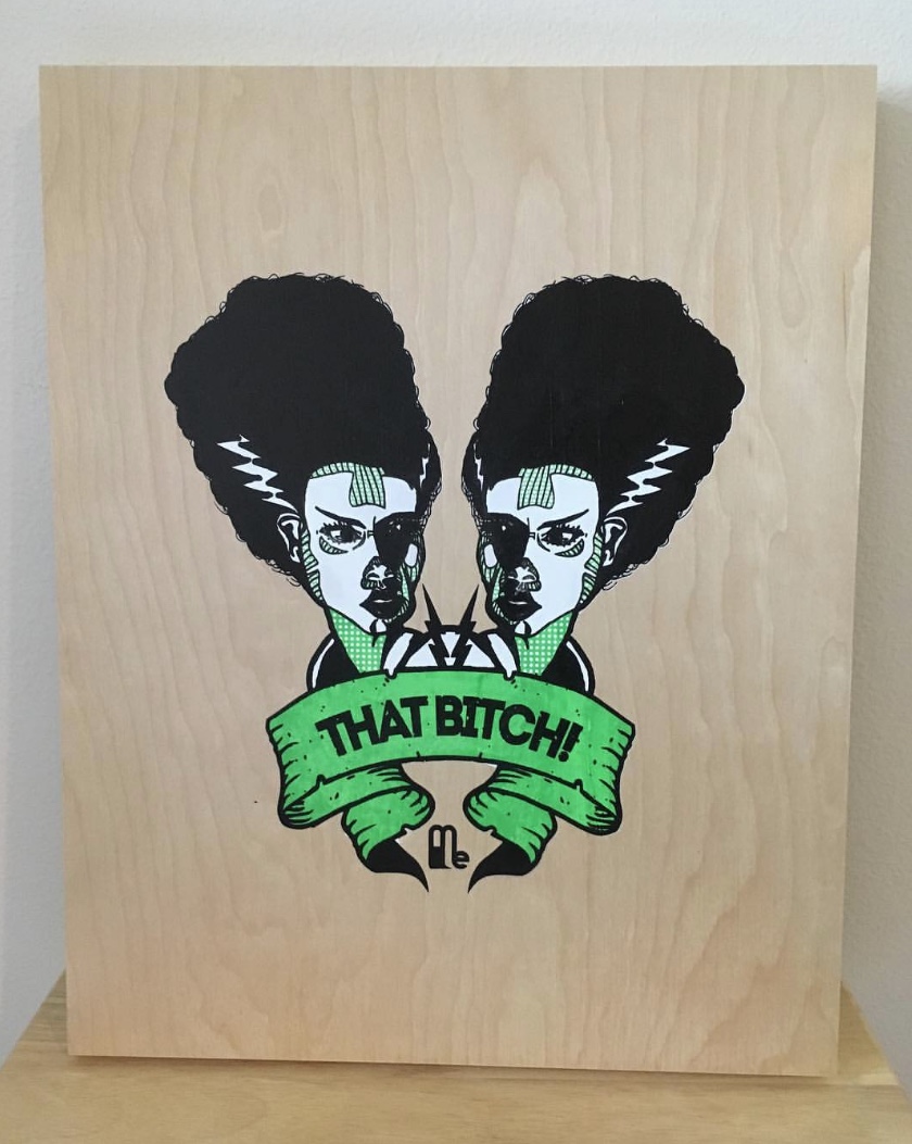 16"x20" screen print on wood panel. 1.5" deep. Can easily mount flush to wall with nails.