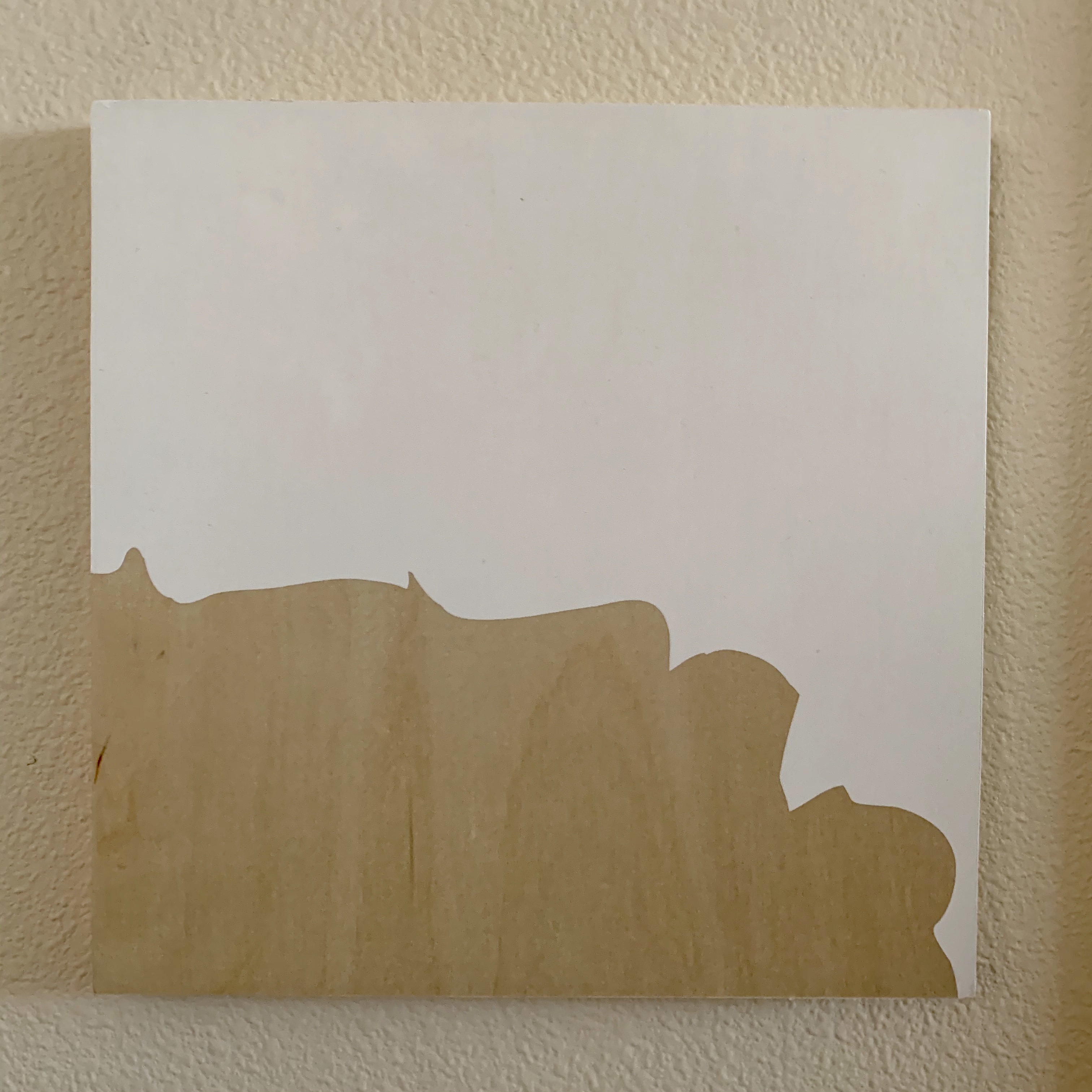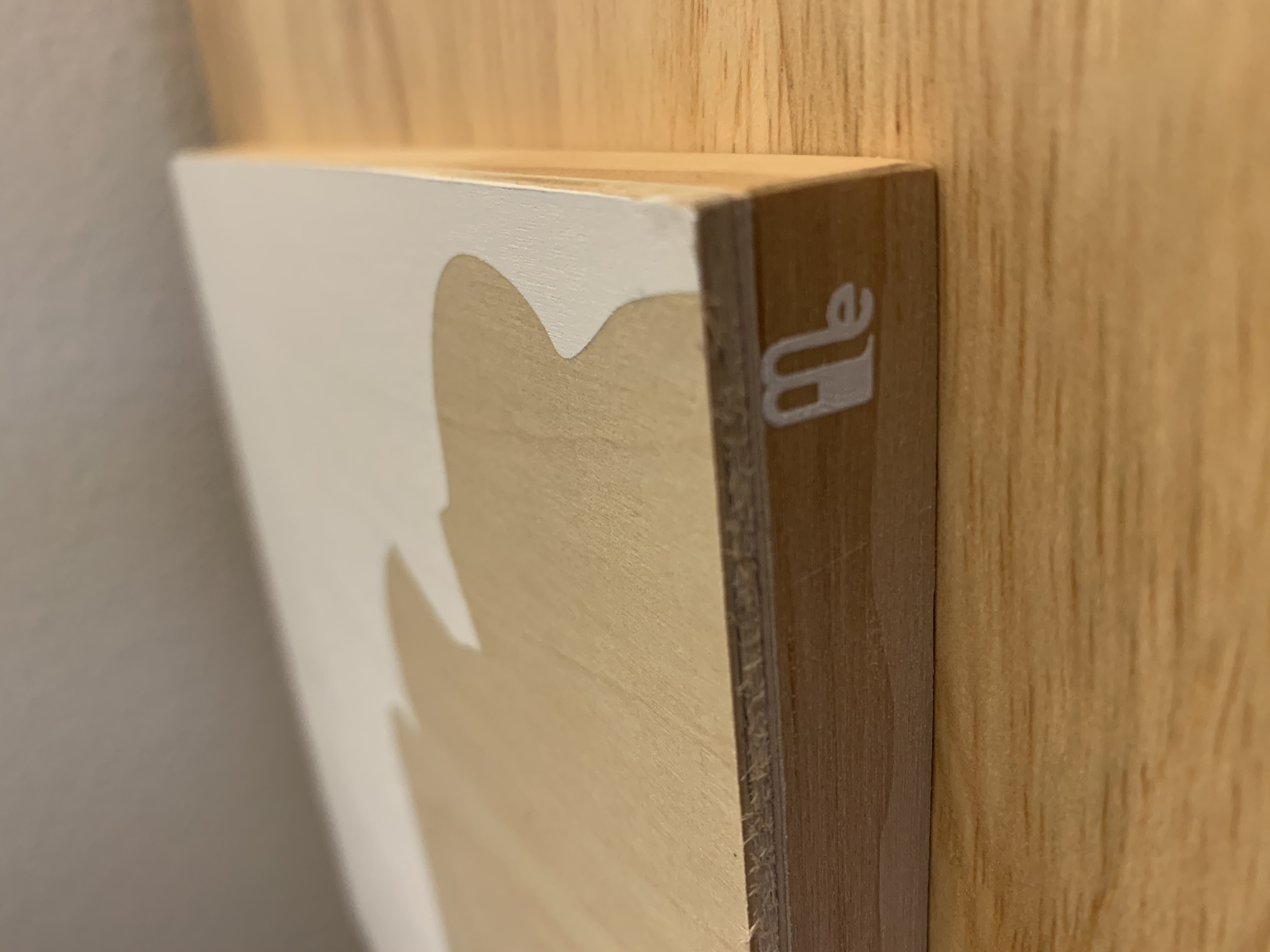 Screen print on a 10"x10" wood panel. 7/8" deep. Mounts flush to wall with two nails.