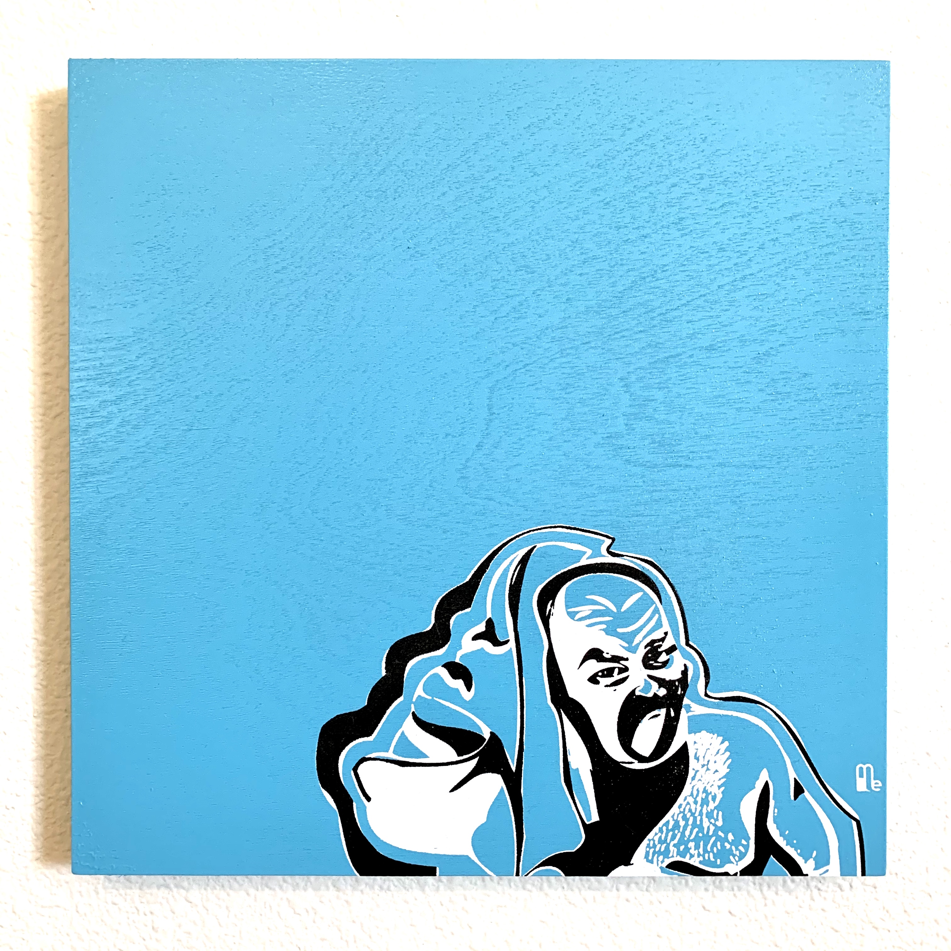 Screen print on a 10"x10" wood panel. 7/8" deep. Mounts flush to wall with two nails.