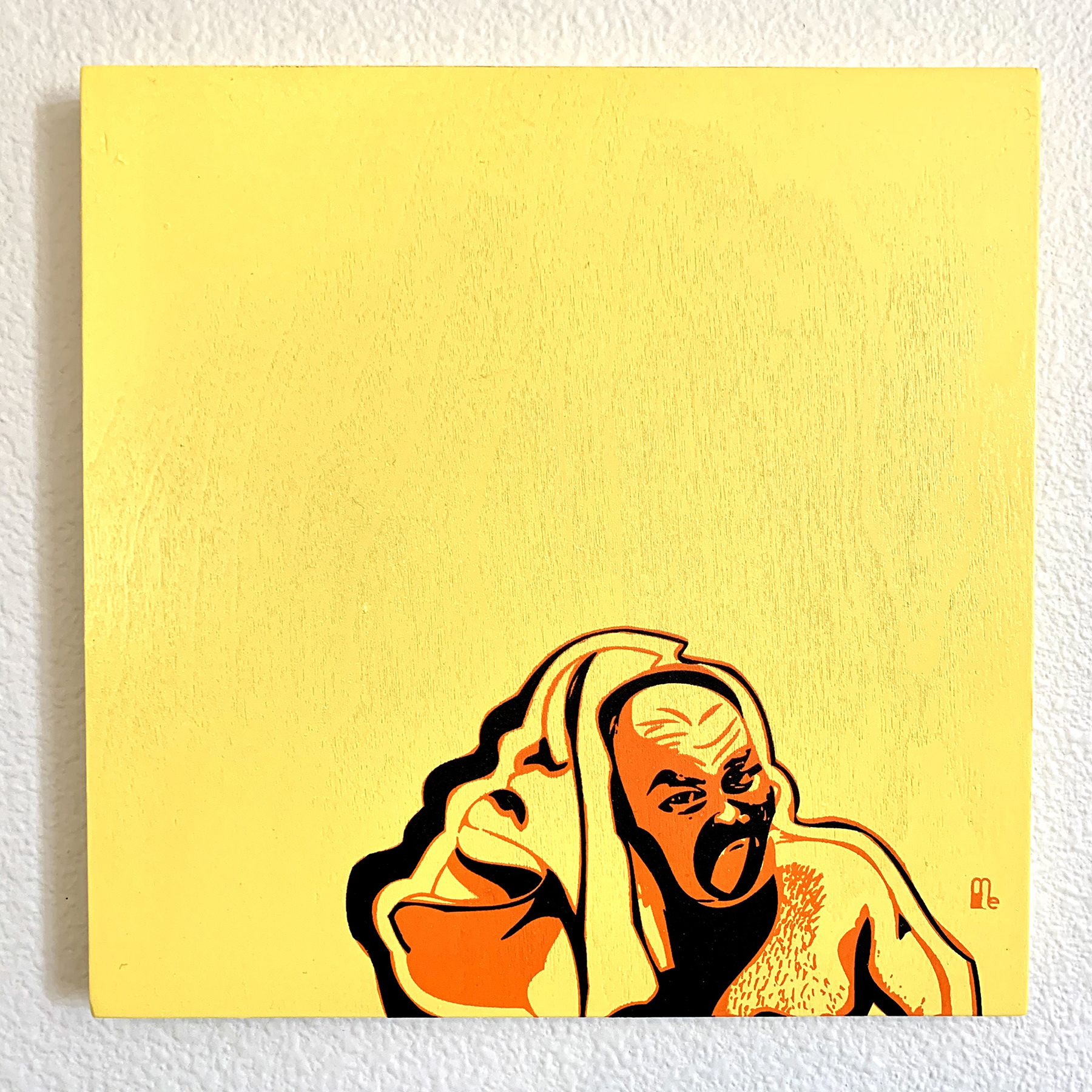 Screen print on a 10"x10" wood panel. 7/8" deep. Mounts flush to wall with two nails.