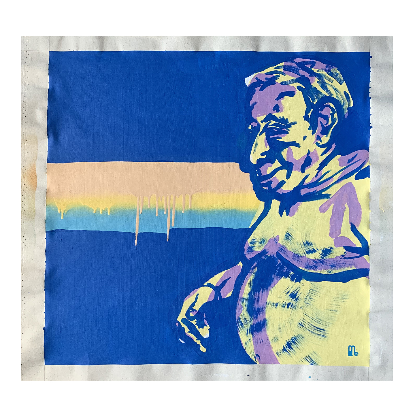 24"x23" acrylic and spray paint painting on rolled canvas. Can ship rolled in a mailing tube and then customer can stretch on a frame by a framer as final piece.