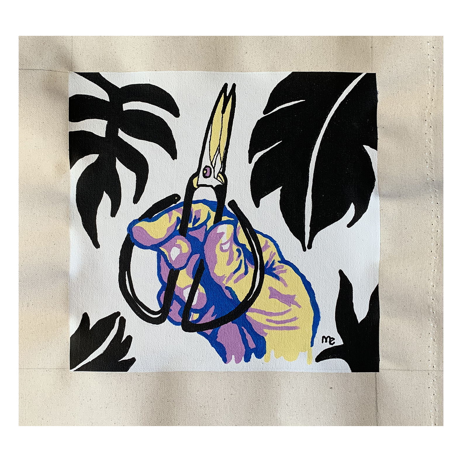 10"x10" acrylic painting on rolled canvas. Can ship rolled in a mailing tube and then customer can stretch on a frame by a framer as final piece.