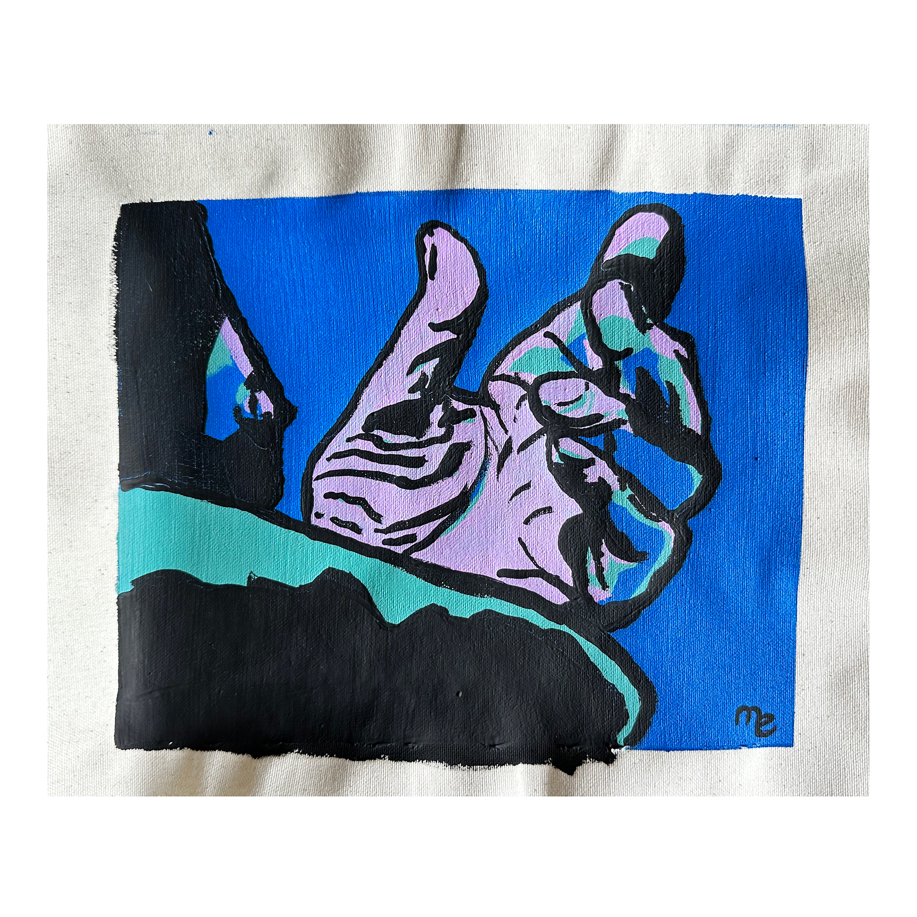 9.75"x8" acrylic painting on rolled canvas. Can ship rolled in a mailing tube and then customer can stretch on a frame by a framer as final piece.