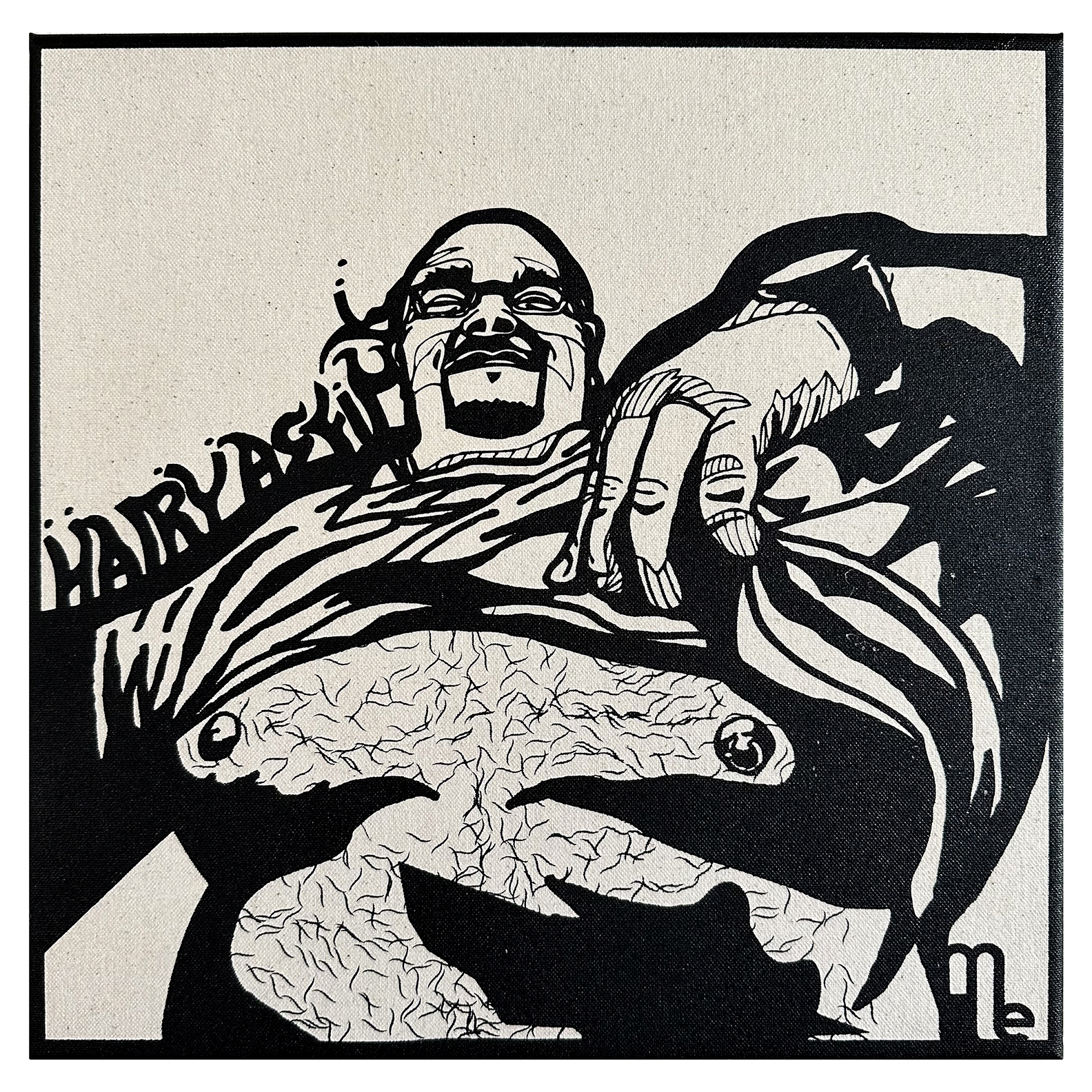 13.75" x 13.75" (.05" deep) screen print on stretched raw canvas. Spray varnished to preserve ink and surface. Can mount flush to wall with two nails.