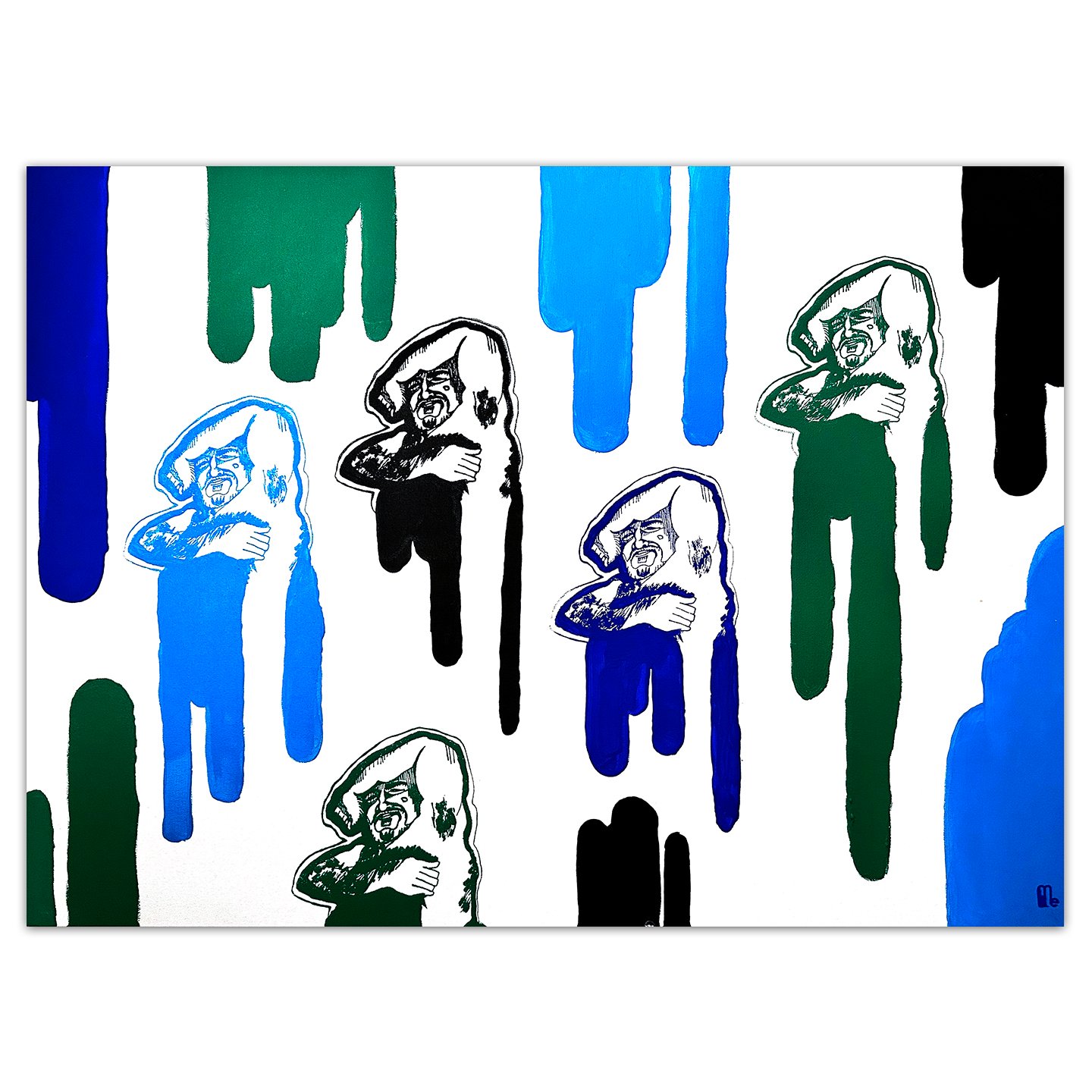 40"x30"x1.5"deep screen print and brush painting on gessoed canvas. Screen printing ink used.
