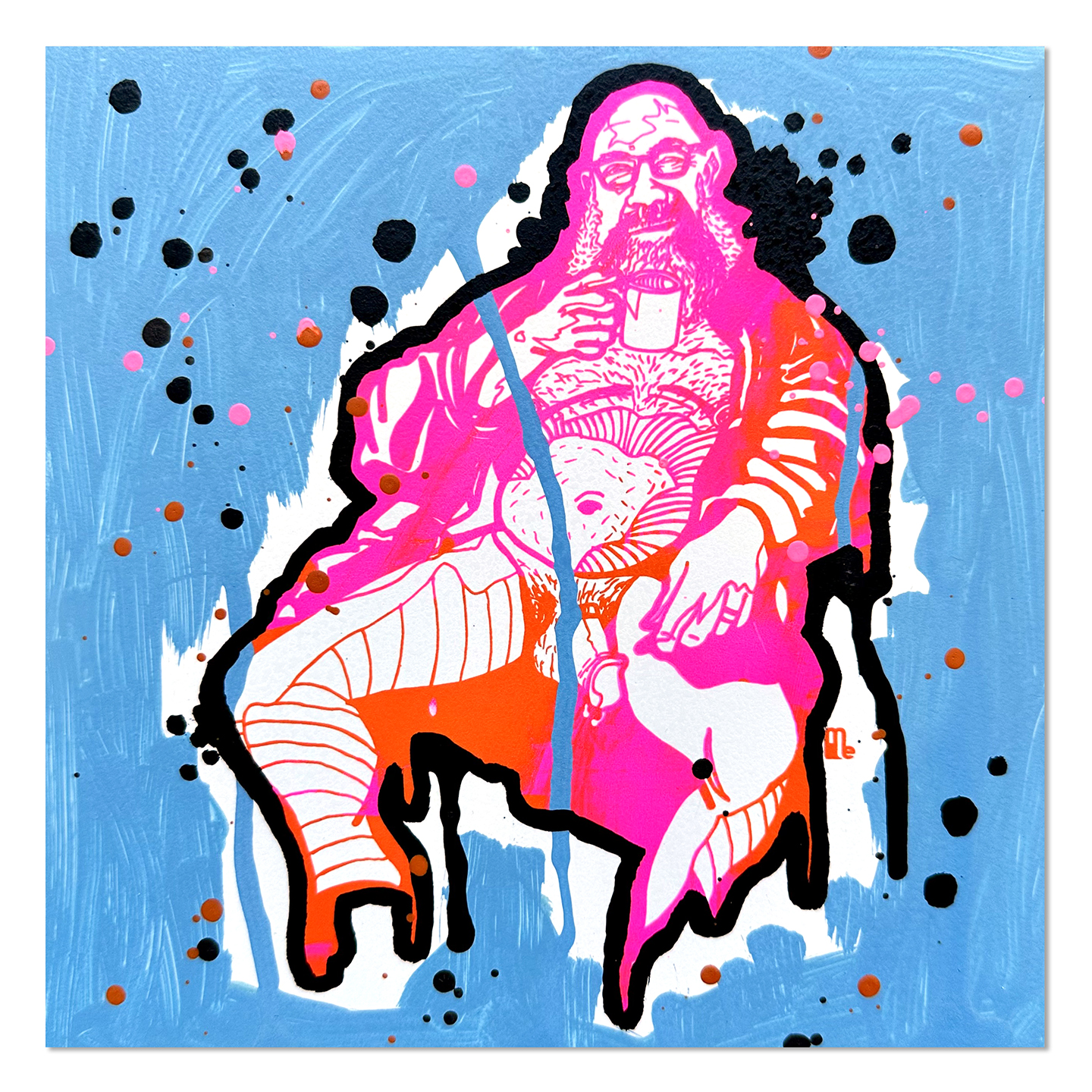 8"x8" (7/8" deep) white wood panel duo color screen print and acrylic paint pen overlays. Can mount flush to wall with two nails. No framing needed.