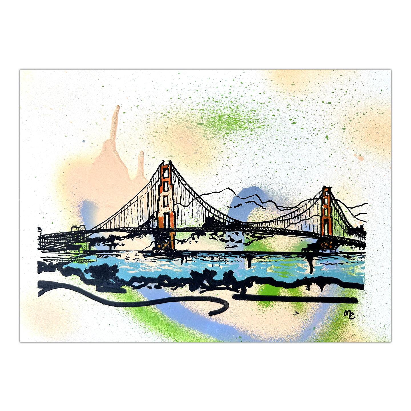 12"x9" spray paint, acrylic brush & acrylic pen on thick watercolor paper.