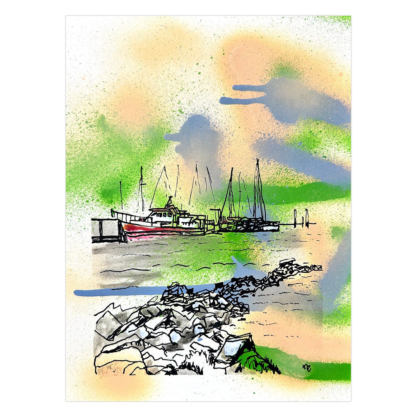 9"x12" spray paint, watercolor and acrylic pen on thick watercolor paper.