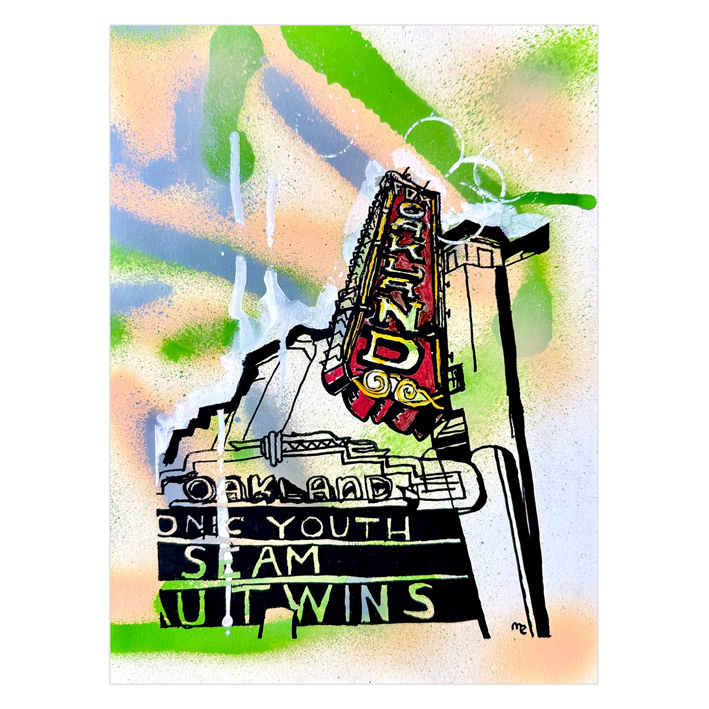 9"x12" spray paint, red Sharpie, white pencil and acrylic pen/marker on thick watercolor paper.